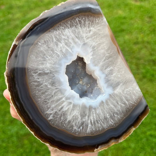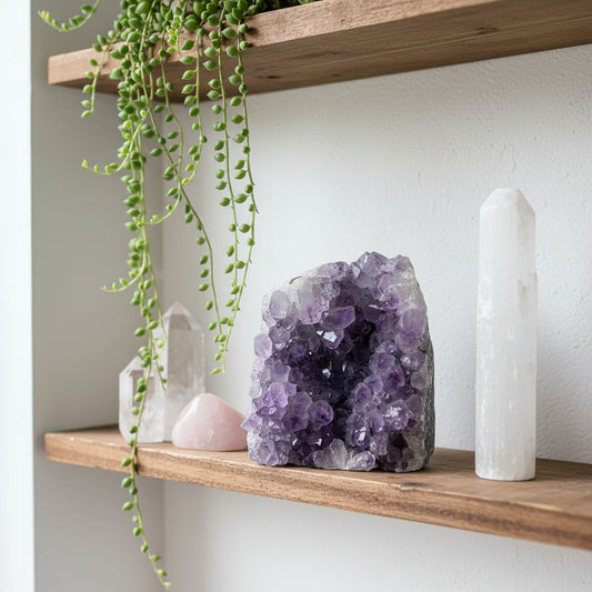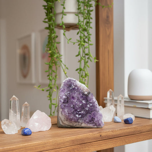 Amethyst Geode on Metal Stand – Natural Crystal Cluster for Home & Healing