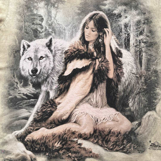 Vintage Retro Preloved T shirt - Wolf and Woman