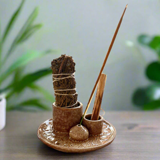 Palo Santo: This sacred wood smudge stick is revered for its sweet, uplifting aroma and tradionally know for its healing and protective qualities. Burning Palo Santo is also believed to bring positive energy and enhance creativity, making it a favorite for meditation and reflection.