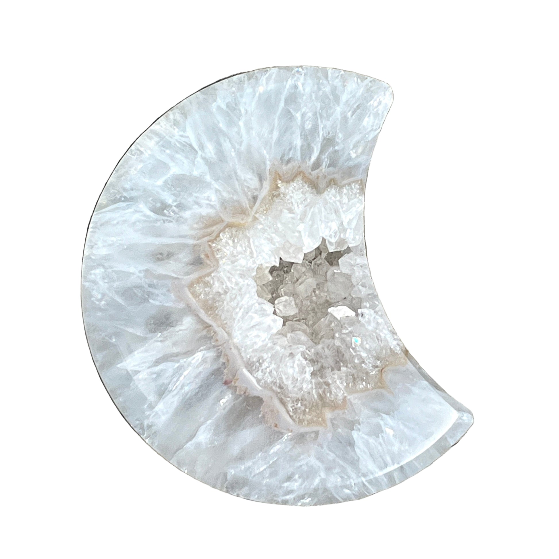 Agate is a steady, supportive stone. It’s known for bringing comfort, strength, and a sense of protection. Many people turn to agate when they need balance, nurturing and healing, or a little extra confidence. This moon-shaped geode is not just a beautiful piece to look at — it’s a gentle reminder to slow down, breathe, and stay connected to your own inner peace.