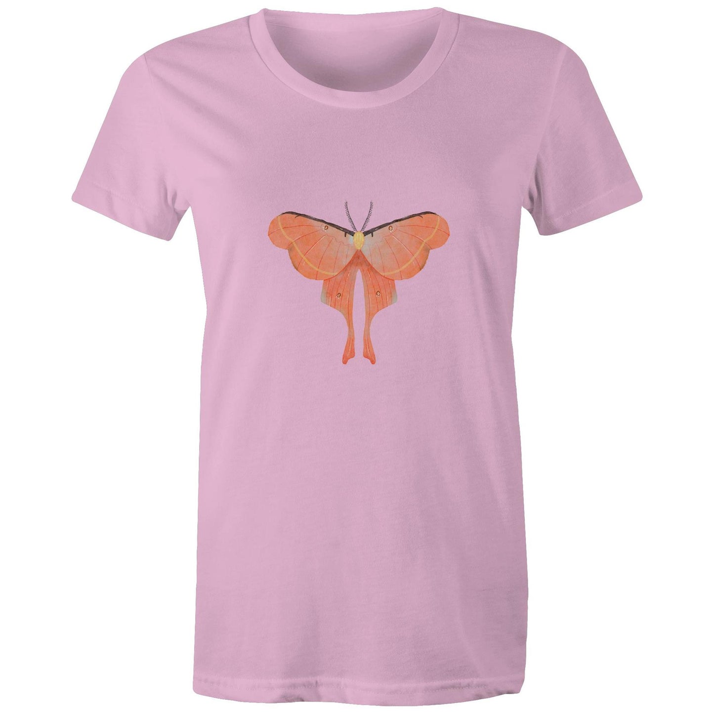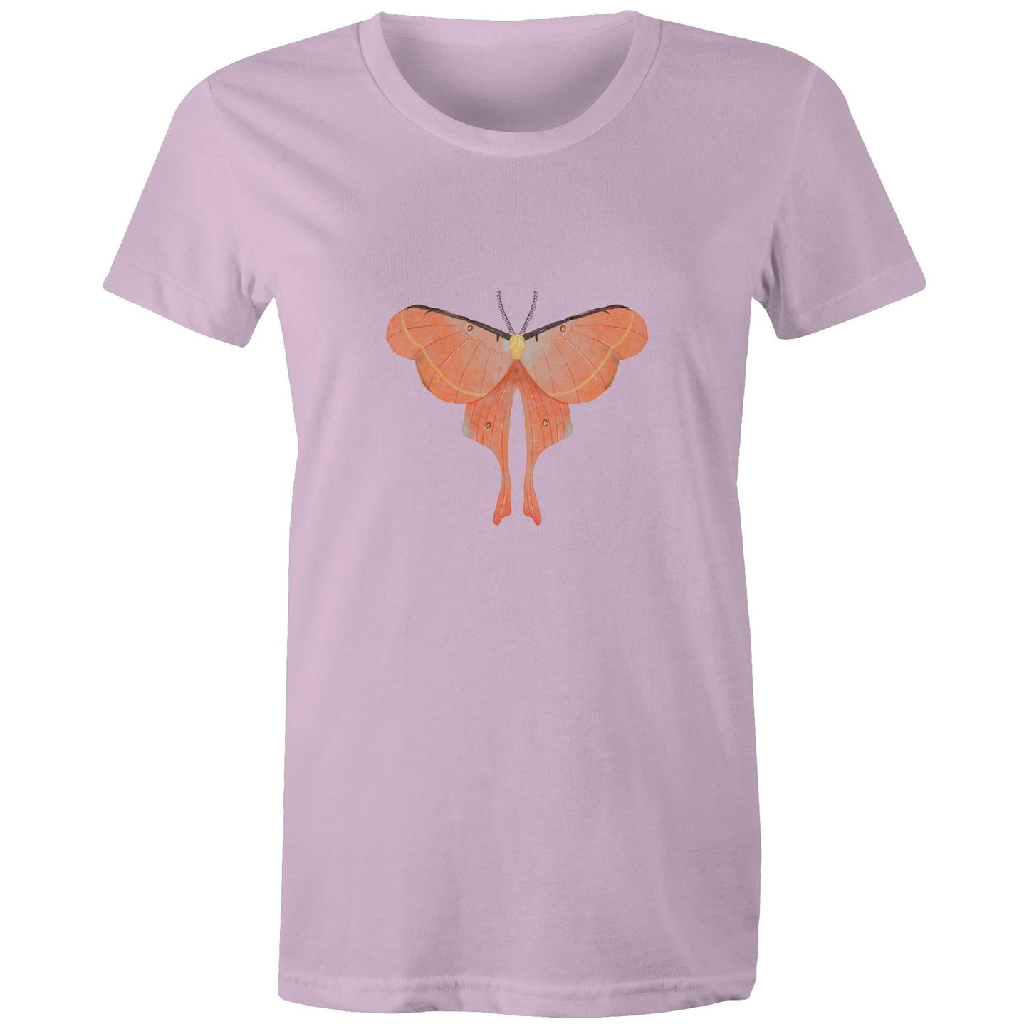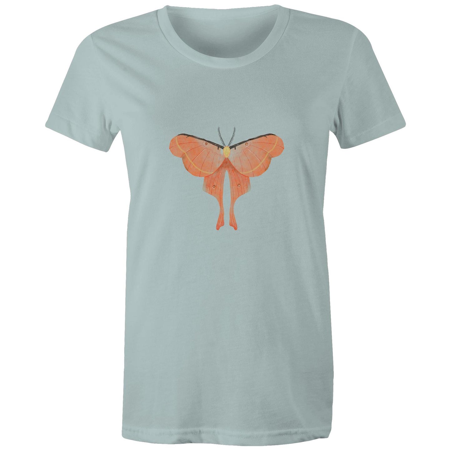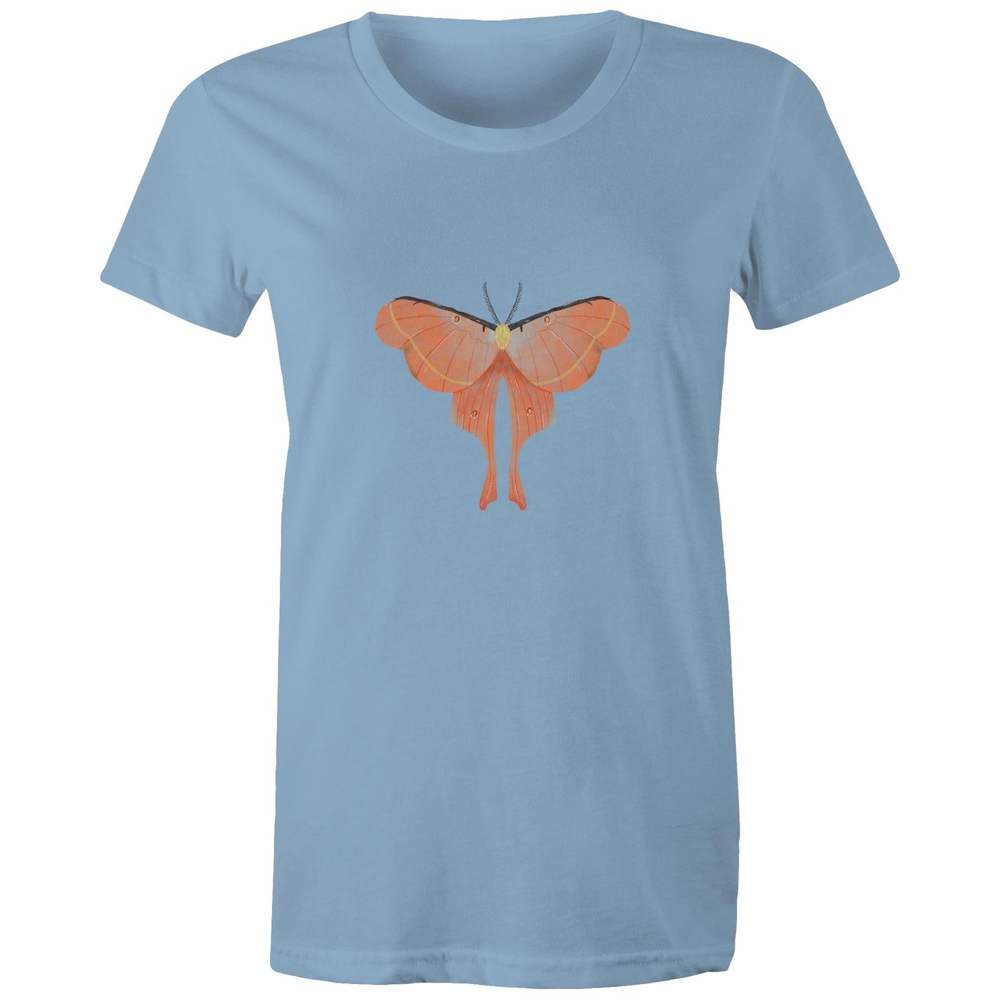 Womens orange moth printed t-shirt from Earthfolk.