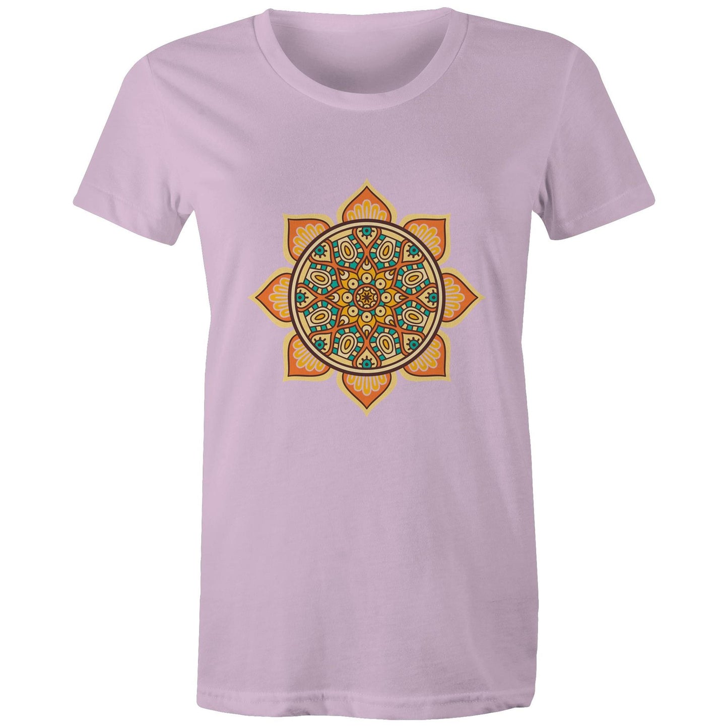 Women's Relaxed Fit Tee with Mandala Orange Print