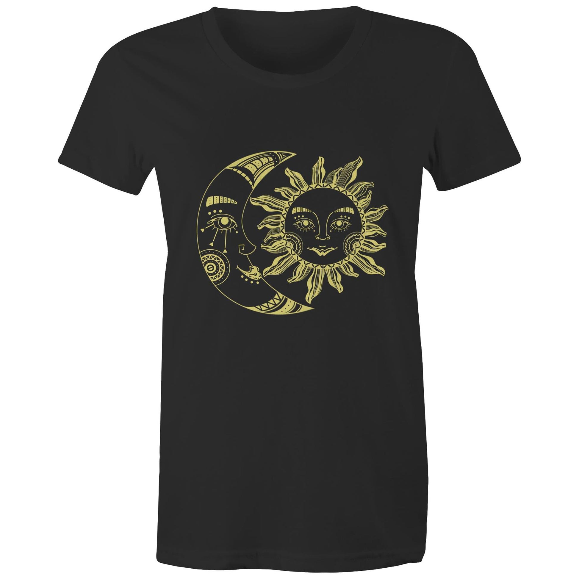 Women's Relaxed Fit Tee with Mellow Yellow Sun and Moon Print